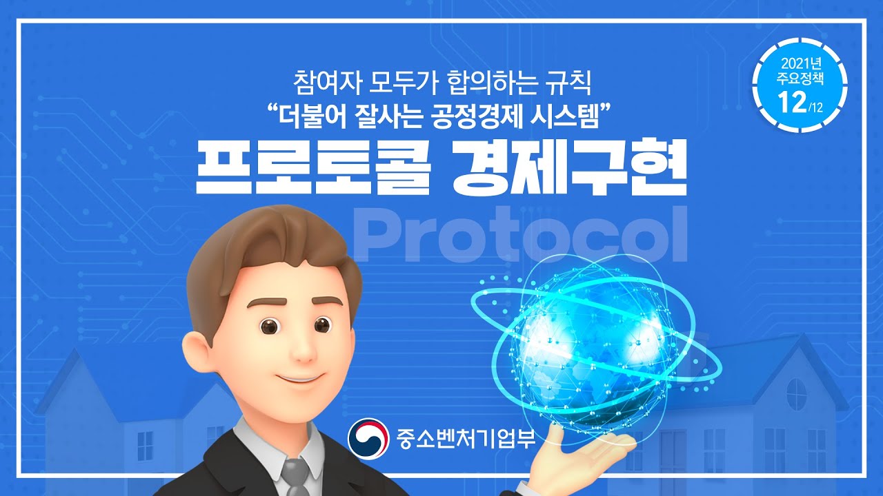 20세기는 이데올로기의 시대였다. 공산진형과 자유진형 간의 이념 전쟁으로 인해, 많은 인명의 손실과 대립으로 점철되었다. 공산주의는 공평한 부의 분배를 말하였으나, 자발적인 경제 참여에 실패하였다. 자본주의와 민주주의는 지금까지 존재했던 가장 훌륭한 이념임에는 분명 하나 그 역시 완전할 순 없었다. 누구나 알고 있듯이 자본주의의 그늘은 골이 깊고 상당히 어둡다. 현시점 인류는 한 번 더 진화한 자본주의를 원한다. 그것의 핵심 키워드는 바로 '공정'이다. 다시 말해 자본의 공정한 분배를 원한다는 것이다. 인류는 1~3차 산업 혁명을 통해 소수에게 자본이 집중되는 것을 경험하였다. 물론, 누구 보다 먼저 미래를 대비하여 열심히 사업을 확장하였기에 더 많은 자본을 가질 수 있게 된 이들은 그만큼 노력하였음이 분명하다. 하지만, 그 과정이 공정했는가라고 묻는다면 대답은 달라진다. 수백 년의 통계 속에 노동 수익보다 자본 수익이 압도적으로 크다는 것은 이제, 웬만한 이들이라면 다 알고 있는 사실이다. 자본주의에서 자본은 가장 중요한 요소이며, 인간의 욕구를 끌어내어 사회와 경제 발전에 이바지하게 하였다. 이제는 공정을 원하는 세상이 도래했다. 그 공정한 부의 분배를 가능하게 하는 핵심 기술인 블록체인이 세상에 나왔고, 지속적으로 발전하고 있다. 프로토콜 경제는 블록체인을 기반으로 코인을 발행하여 경제 주체들로 하여금 자발적으로 경제 생태계에 참여하도록 한다. 우 사진의 중소벤처기업부의 홍보 영상에 나오는 블록체인 스타트업 기업 보이스루의 경우처럼, 경제 생태계에 참여하는 모두의 기여도를 합의에 의해 정한 약속을 기반으로 코인 또는 토큰을 분배한다. 분배받은 코인의 가치를 상승시키기 위해 구성원 모두가 노력하게 된다. 기여하는 만큼 많은 코인을 받게 되고, 생태계가 성장하면 자연스럽게 대가로 받은 코인의 가치가 상승한다. 결국, 회사의 모든 시가 총액을 회사가 성장하는 데 기여한 기여자들 모두에게 돌아간다. 이것이 프로토콜 경제이다.