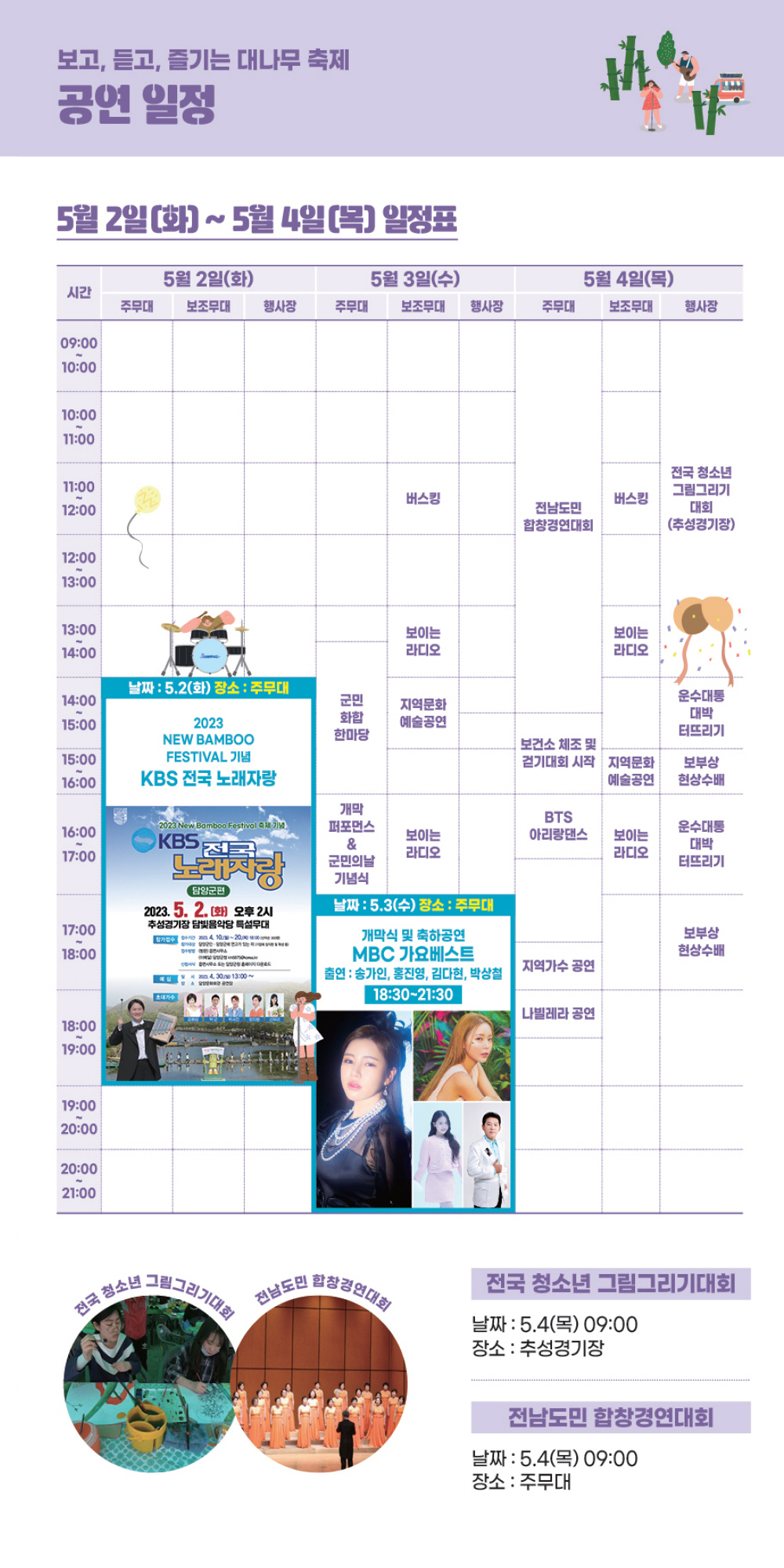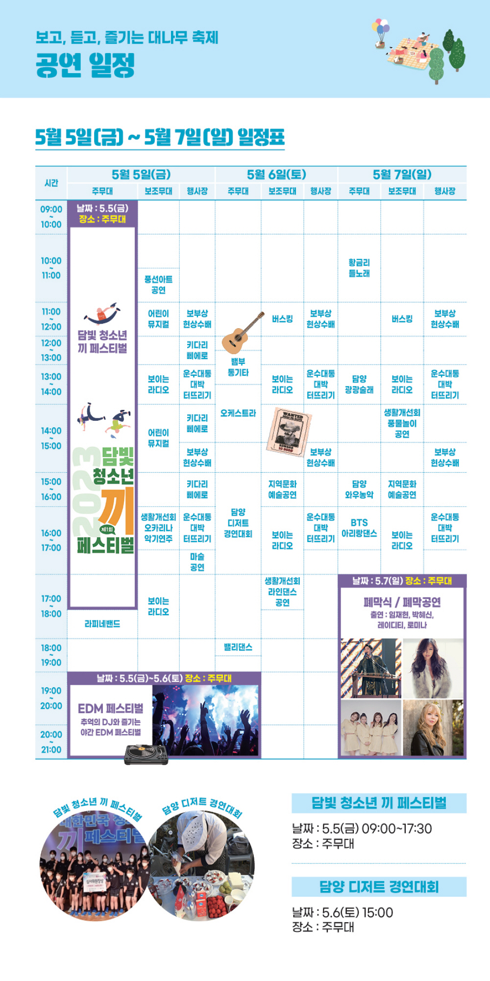 대나무 축제 행사장 주무대(담빛 음악당), 5월 5일(금) 09:00 ~ 17:30