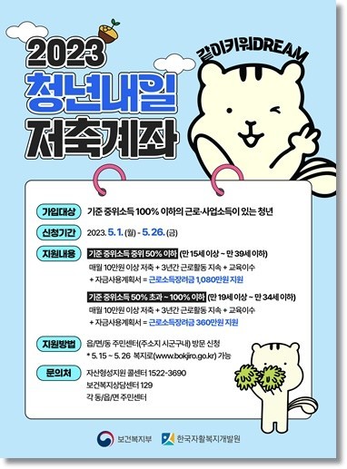 2023년 5월 1일부터 10만원을 넣으면 정부도 10만원을 보태주는 청년내일저축계좌 신청이 시작되었다. 본 포스팅에 신청할 수 있는 지원대상, 소득기준, 지원금액 그리고 중요한 신청방법에 대해 알아본다.