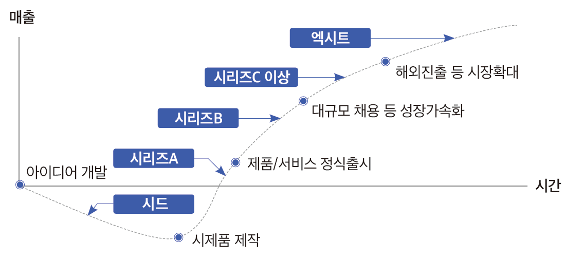 위 표는 스타트업의 성장에 따른 투자 단계를 나타낸 것이다.